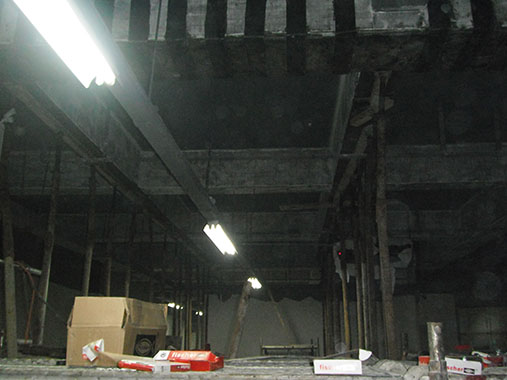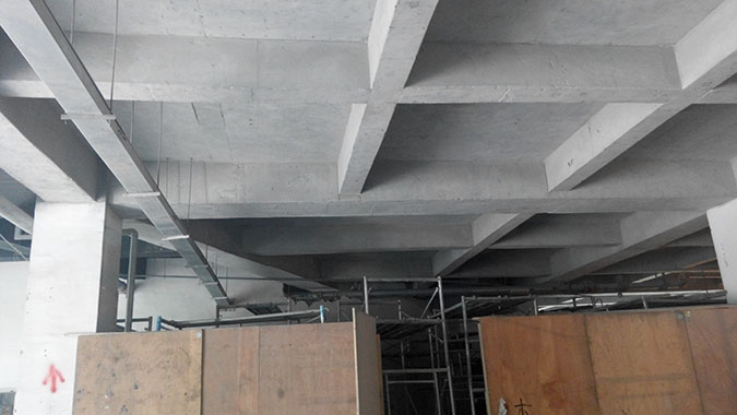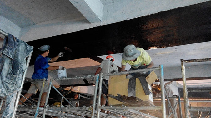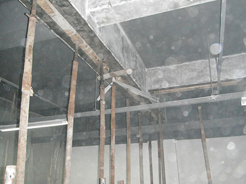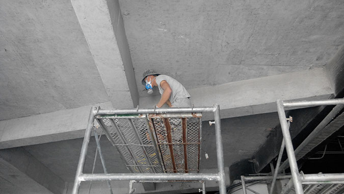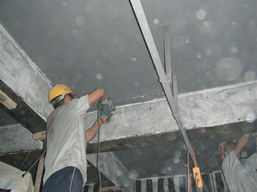 主要施工內容:新增泳池、泡池部位改造加固;會所部位改造等,主要包括梁板擴大截面加固、灌漿料施工、梁板粘鋼施工、梁板碳纖維加固等。
